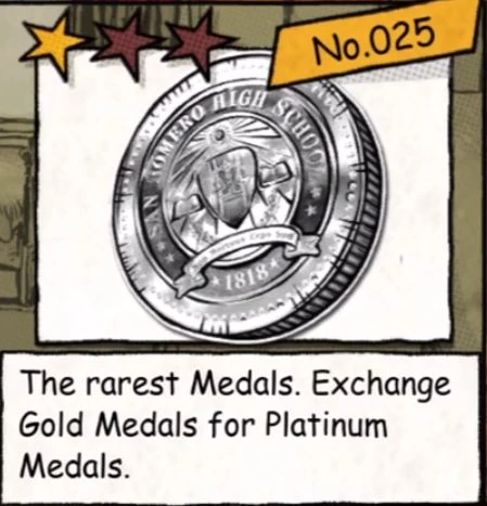 Platinum Medals (プラチナメダル) are one of the items in the game Lollipop Chainsaw. They are earned when Juliet executes Sparkle Hunting combos when killing zombies, and occasionally when killing named zombies or during other special encounters.